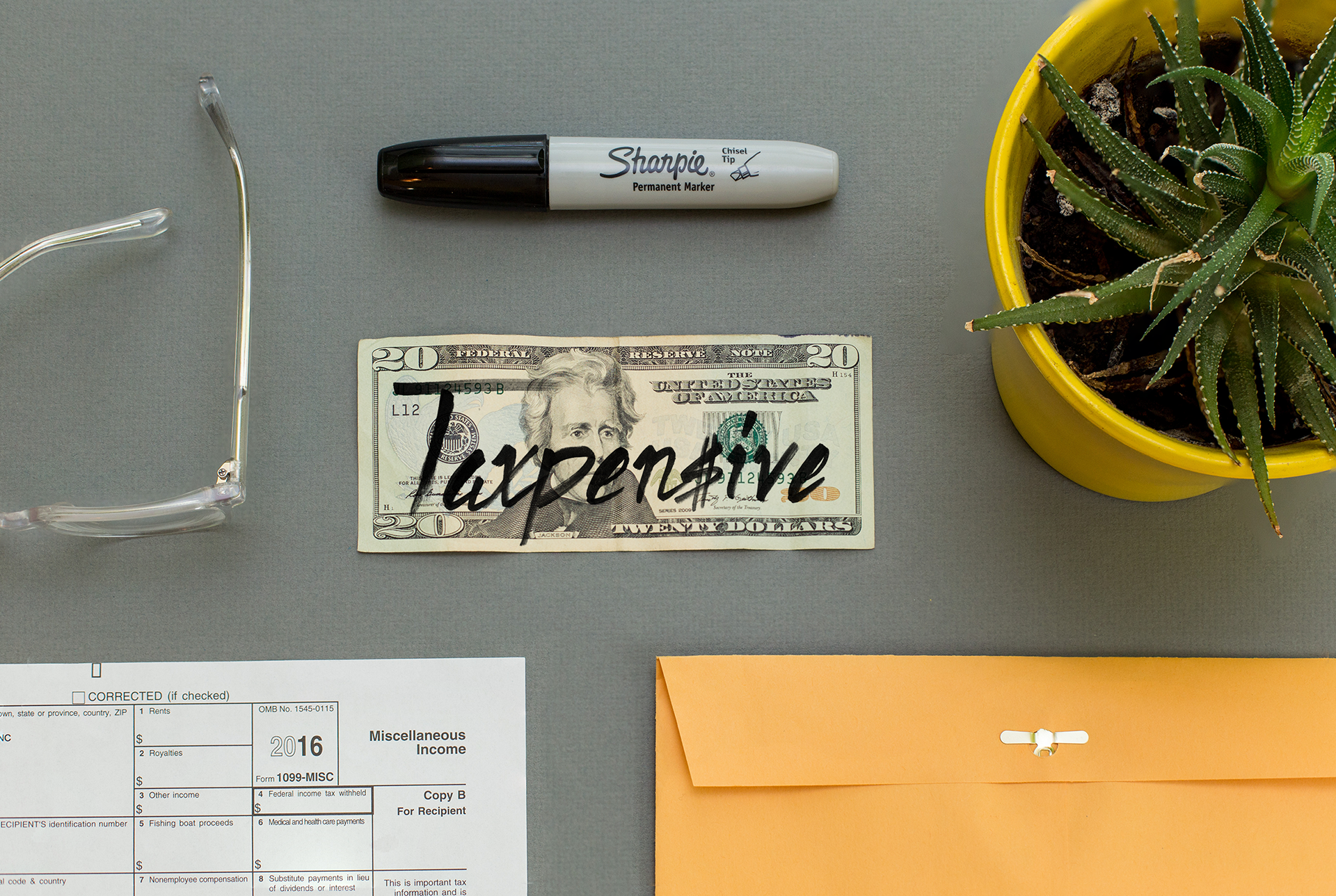 Tax day image series featuring hand-lettering, layout design, and focus-stacking photography.